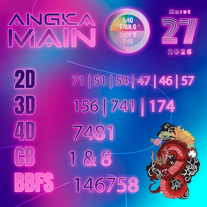 ANGKA MAIN SAO PAULO JUMAT 27 MARET 2026 – situs yang akan memberikan PRESIKSI ANGKA MAIN dengan menggunakan rumus perhitungan yang tepat dan akurat oleh para master yang dimiliki team Togel Angka jitu untuk menghasilkan ANGKA MAIN HARI INI SAO PAULO untuk sobat tercinta semuanya.