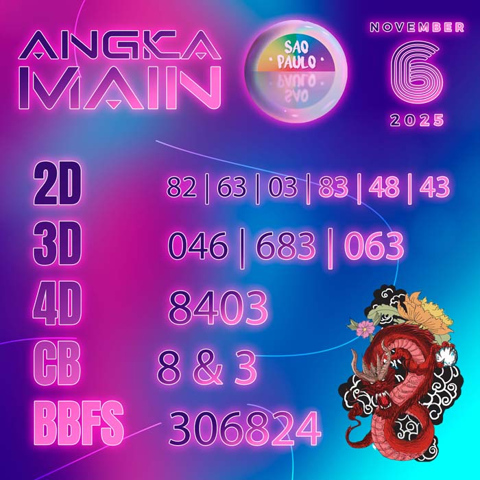 ANGKA MAIN SAO PAULO KAMIS 6 NOVEMBER 2025 – situs yang akan memberikan PRESIKSI ANGKA MAIN dengan menggunakan rumus perhitungan yang tepat dan akurat oleh para master yang dimiliki team Togel Angka jitu untuk menghasilkan ANGKA MAIN HARI INI SAO PAULO untuk sobat tercinta semuanya.