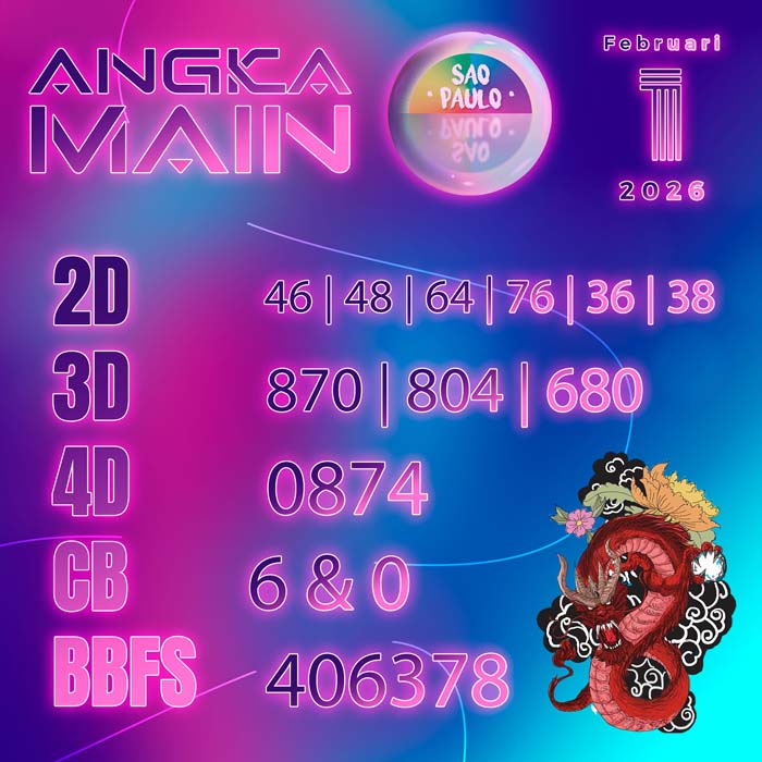 ANGKA MAIN SAO PAULO MINGGU 1 FEBRUARI 2026 situs yang akan memberikan PRESIKSI ANGKA MAIN dengan menggunakan rumus perhitungan yang tepat dan akurat oleh para master yang dimiliki team Togel Angka jitu untuk menghasilkan ANGKA MAIN HARI INI SAO PAULO untuk sobat tercinta semuanya.