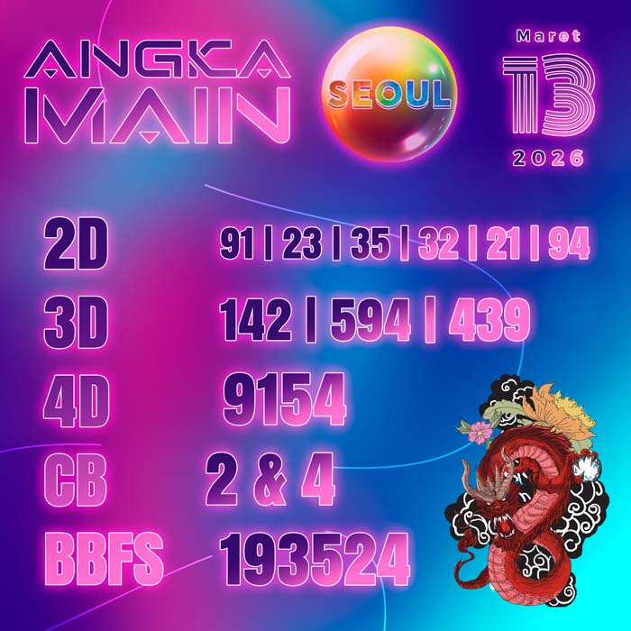 ANGKA MAIN SEOUL JUMAT 13 MARET 2026 – Selamat datang di web Prediksi Angka Main togel online yang akurat dan resmi.