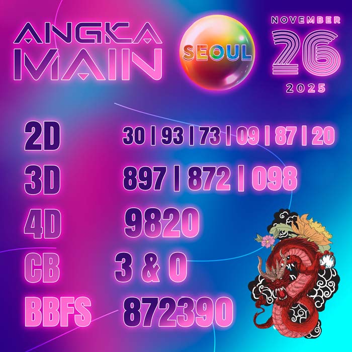 ANGKA MAIN SEOUL RABU 26 NOVEMBER 2025 – Selamat datang di web Prediksi Angka Main togel online yang akurat dan resmi.