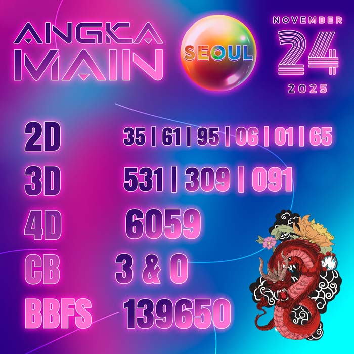 ANGKA MAIN SEOUL SENIN 24 NOVEMBER 2025 – Selamat datang di web Prediksi Angka Main togel online yang akurat dan resmi.