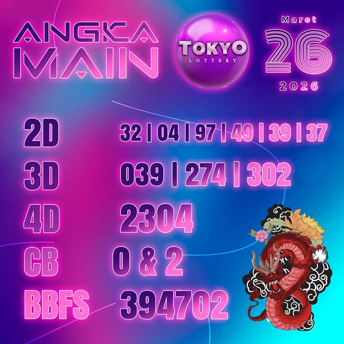 ANGKA MAIN TOKYO KAMIS 26 MARET 2026 – Aloha Selamat datang kami ucapkan kepada semua sobat togelers. Di sini Togel Angka main akan memberikan PREDIKSI BOCORAN ANGKA MAIN serta bocoran togel jitu hari ini yang sudah terkenal dan sudah banyak pengila togel yang memainkan pasaran ini.