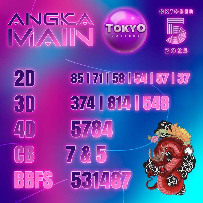 ANGKA MAIN TOKYO MINGGU 5 OKTOBER 2025 – Aloha Selamat datang kami ucapkan kepada semua sobat togelers. Di sini Togel Angka main akan memberikan PREDIKSI BOCORAN ANGKA MAIN serta bocoran togel jitu hari ini yang sudah terkenal dan sudah banyak pengila togel yang memainkan pasaran ini.